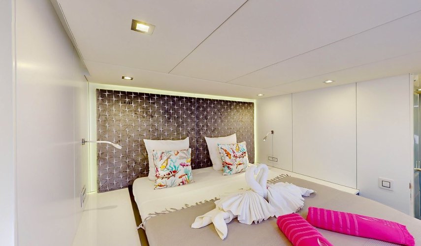 The skipper sleeps in a double cabin, the others are available for passengers