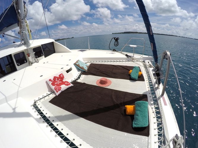JOUR 1 : Une navette viendra vous chercher à l'aéroport et vous amènera au village de Vaitape, où vous serez accueilli avec des colliers de fleurs traditionnels. Vous embarquerez ensuite sur le bateau et vous installerez. Autour d'un cocktail de bienvenue, Sylvain vous rappellera les règles de sécurité et de vie à bord. Vous hisserez les voiles pour Motu Toopua et ferez escale à l'Ouest du Motu. Première baignade dans l'eau turquoise du lagon. Vous pourrez, ensuite, chausser vos palmes et vous équiper de masque et tuba pour découvrir les fonds marins du lagon et, peut-être, nager avec des raies pastenagues. Retour sur le catamaran pour admirer le coucher de soleil et dîner à la lumière des bougies. Nuit au mouillage.