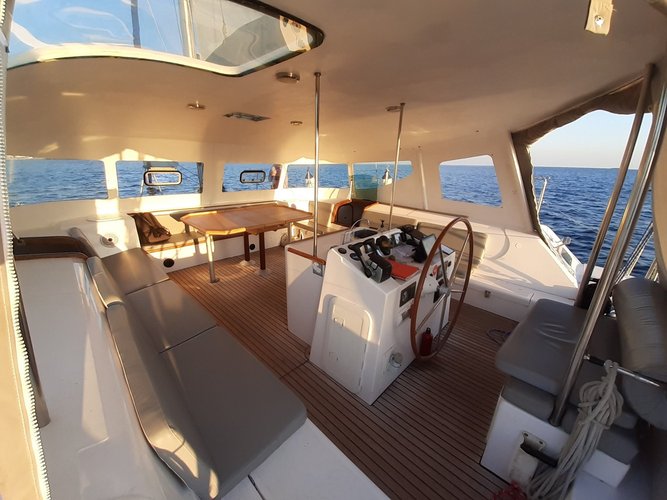 Catamaran doté d'un spacieux espace extérieur, parfait pour des sorties journées. Sa stabilité en fait un bateau totalement adapté à la découverte de la navigation.