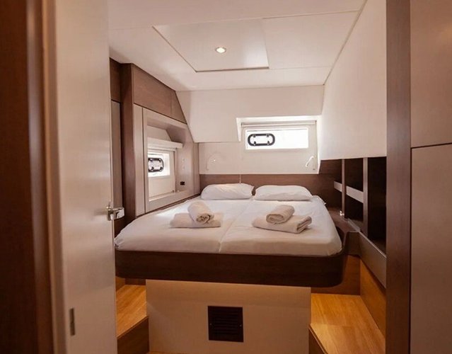 Catamaran Bali 4.6 de 2024 comportant 4 cabines avec lits doubles, 1 cabine avec lits superposés et une cabine pour le skipper.